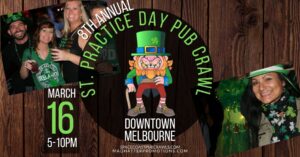 The Crawl starts at Drews Brews & Grille, 2101 Henley Court, Melbourne, FL 32901, and crawls to Lumber Jack’s, Debauchery, then Meg O’Malley’s & Mugsy’s on Main.