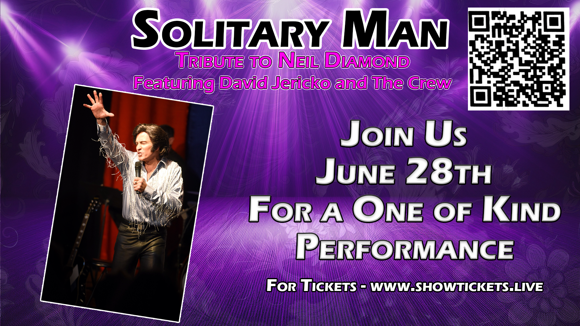 Veteran vocalist and Tribute artist David Jericko brings his talents to the stage with a tribute to music icon, Neil Diamond. With 30 years of performance and 15 years of live ELVIS shows around the country, including Las Vegas, Memphis, Tennessee and New York’s Rockefeller Center, David has combined stage presence and vocal skills to bring the complete Neil Diamond experience to life.