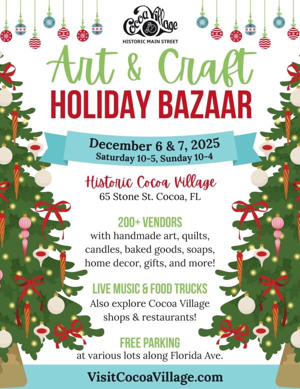 The historic village becomes one of Florida’s largest outdoor handmade markets, lined with 200+ fine artists and crafters displaying their handmade pieces. Whether a stunning oil painting or a unique pair of wire wrapped earrings, there’s something for everyone in Cocoa Village!