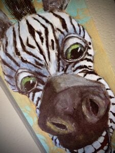 Julia says. “I love to make people laugh. When my art makes someone smile, I’ve done my job. Often it’s a surprise to see who will show up when I sit down at the easel. A curve of a lip here, the top of a head there and suddenly a character rises to the surface. Each of my paintings takes me on a wild ride, sharing their secrets through texture, color and most importantly, their eyes.”
