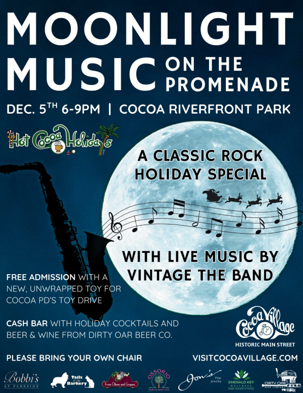 Join us at the beautiful Cocoa Riverfront Park for Moonlight Music on the Promenade: a Classic Rock Holiday Experience!