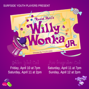Step inside Willy Wonka’s magical chocolate factory in this fast-moving, colorful musical based on Roald Dahl’s beloved story. Featuring songs from the classic 1971 film plus fun new additions, Willy Wonka Jr. is packed with imagination, humor, and larger-than-life characters.