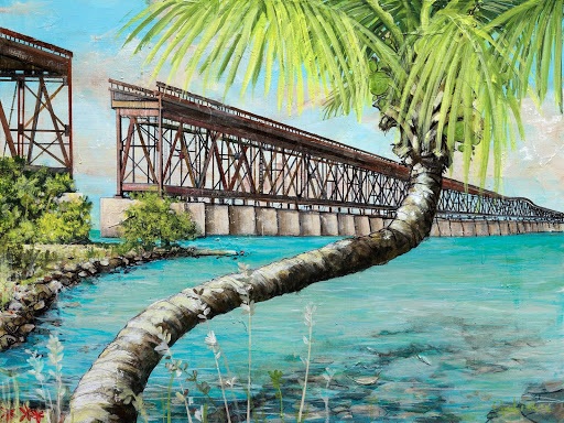 I am a fan of many styles of Art, I referenced these styles in my art to form a dialogue of how and why modern civilization is affecting the thousands of years of evolution. I grew to love everything from Graffiti to the Highwaymen. Impressionism and expressionism also can be found in my work through brush strokes and the occasional “accident”. Aside from painting dramatic sunsets I also show the viewer telephone poles and trash that can be found in all reaches of the state. Old buildings that sit and crumble are framed by historic palms and native oaks, as if nature is slowly reclaiming. I paint old railroad bridges and show the graffiti that has given a modern light to the rust and decay of a once thriving industry, that is only a part of our day to day environment.